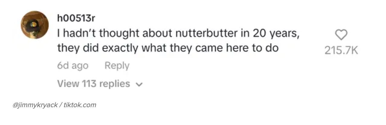 It’s a resounding yes. Its most recent posts have amassed more than 1 million views on TikTok, its most viral reaching 18M. Nutter Butter’s following has more than doubled and engagement is growing with fans duetting posts and talking about the brand in the comment section, on Reddit and across Twitter. Their target audience is Gen Z and Gen Alpha but even older generations are showing an interest:
