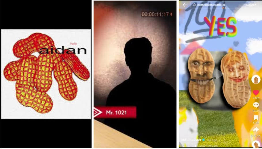 Nutter Butter is leaning into the Brain Rot trend. These low quality, short and often disturbing content pieces are designed for obsessive scrolling. Nutter Butter’s posts are confusing and take inspiration from fan engagement. The brand leverages bizarre characters like "Aidan," "Nutter Butter Man," and "Mr. 1021.”